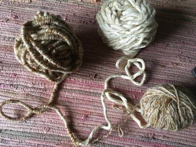 Vorige week schreef ik over het ‘vertelnest’ dat ik nog nodig heb. Deze week ben ik begonnen aan de voorbereidingen daarvoor. Ik ben in mijn voorraad garens en stoffen op zoek gegaan naar geschikt nestmateriaal. Het moest er een beetje uitzien als takken. Ik vond daarbij een garen dat dik genoeg was voor takken. Het had echter niet de goede kleur. Een ander dunner garen had wel de goede kleur, maar niet de juiste dikte. Dus wat doe je dan? Het dunne garen wikkelen om het dikkere garen leek mij een goede oplossing. Het is alleen wel een tijdrovend klusje: echt monnikenwerk!