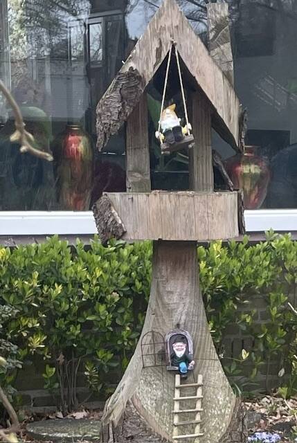 Ja, kabouters, die moesten er in elk geval op. En een stevige boom, dat leek Jan ook wel wat. In Oranjewoud had ik in een tuin een boom en een vogelhuisje met kabouters gezien. We besloten dit als uitgangspunt te nemen.