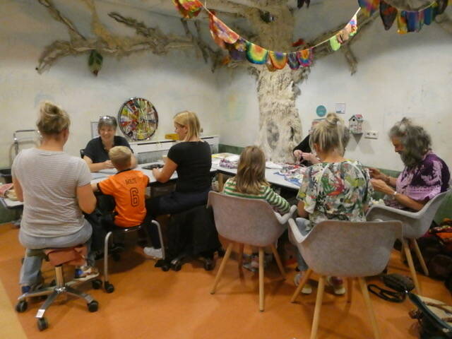 Binnen waren Ingrid en Jan aan het vlechten voor de staart, waarbij ze af en toe wat hulp kregen. Maar vooral het maken van de kleine geluksdraakjes bleek een groot succes.